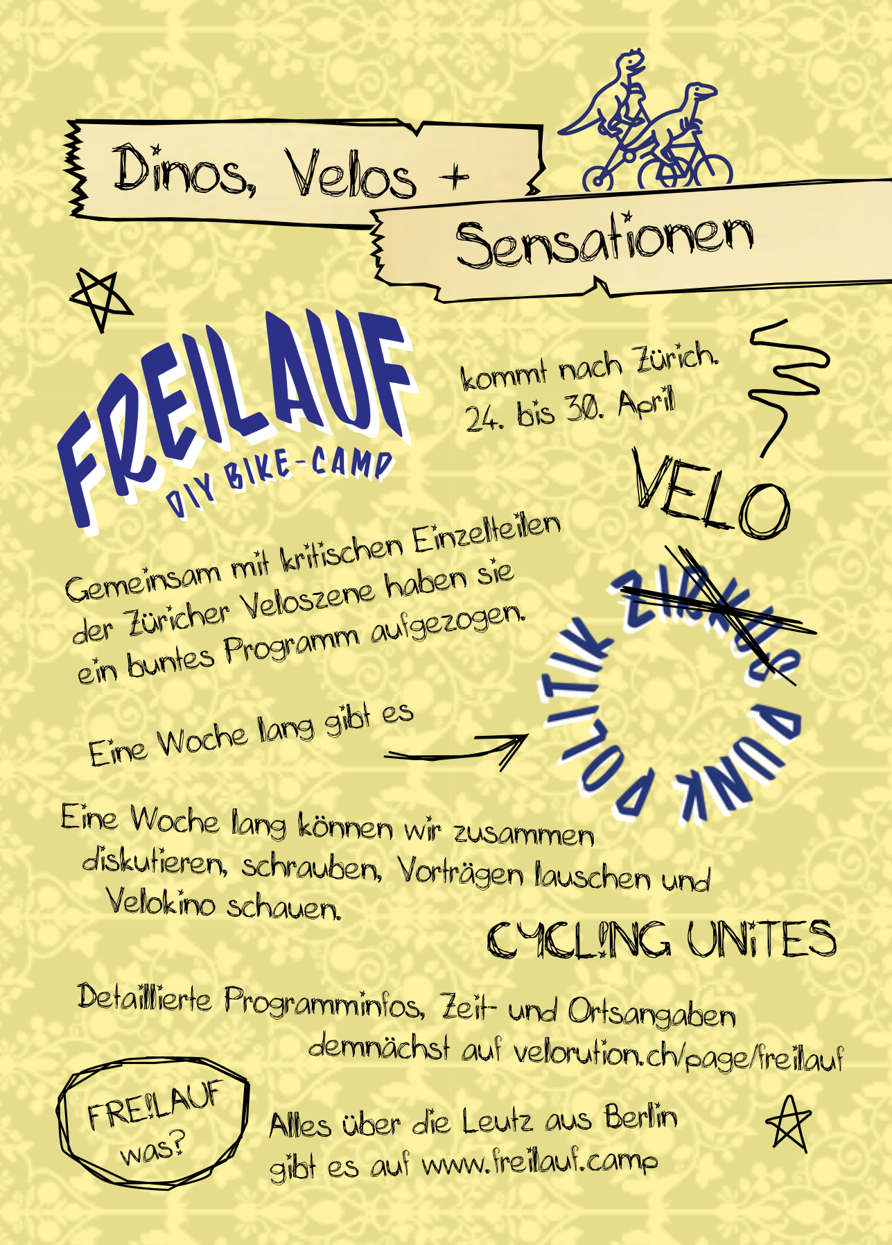 Das Fahrrad Kultur Kollektiv 3000 (kurz FKK 3000) kommt nach Zürich! Vom 24. bis 30. April besuchen uns 16 Aktivist*innen aus Berlin. Ihre Leidenschaft gilt dem Fahrrad. Es steht im Mittelpunkt ihres Handelns und ist für sie mehr als nur ein Fortbewegungsmittel. Es steht für Unabhängigkeit, Umweltbewusstsein sowie gelebte Konsumkritik. Deshalb kreieren sie jeden Sommer mit dem FRE!LAUF DIY Bike-Camp einen partizipativen FRE!raum für Fahrradaktivist*innen, die Lust haben, die Mobilitätswende selbst in die Hand zu nehmen. An genau diesem Festival ist die Idee für den Austausch zwischen Zürich und Berlin entstanden.